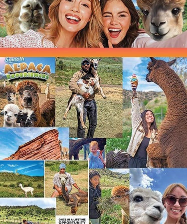 Embark upon an enchanting and unforgettable magical experience. You'll spend time with our affectionate Alpacas, and immerse yourself in the breathtaking scenic beauty of Red Rocks Park. We pride ourselves on providing truly unique experiences that allows you to get up-close and personal with Alpacas