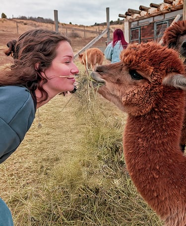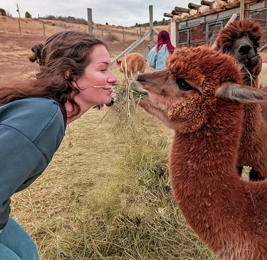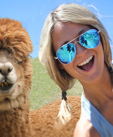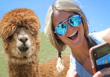 Capture pure joy! Snap plenty of photos of yourself smiling and connecting with our friendly alpacas. Each moment you share lets your friends and followers feel the magic and happiness